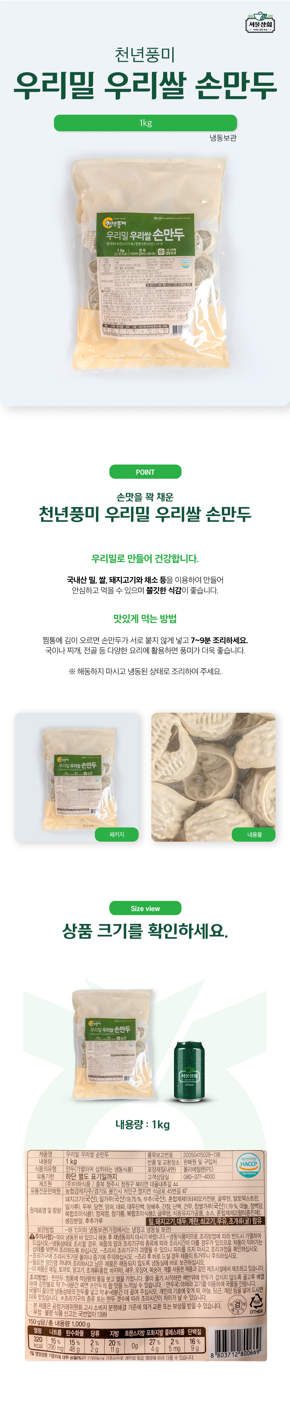 [천년풍미] 우리밀 우리쌀 손만두 1kg