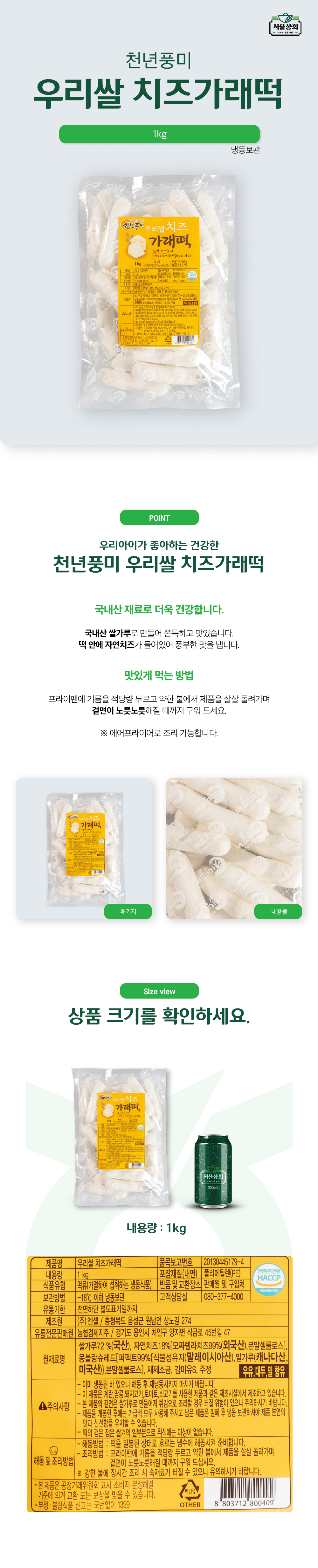 [천년풍미] 우리쌀 치즈가래떡 1kg