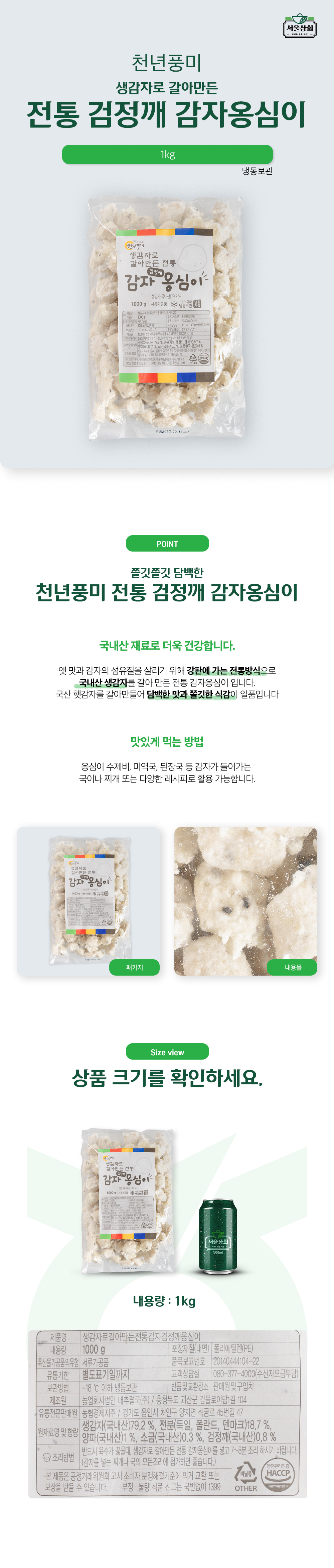 [천년풍미] 생감자로 갈아만든 전통 검정깨 감자옹심이 1kg