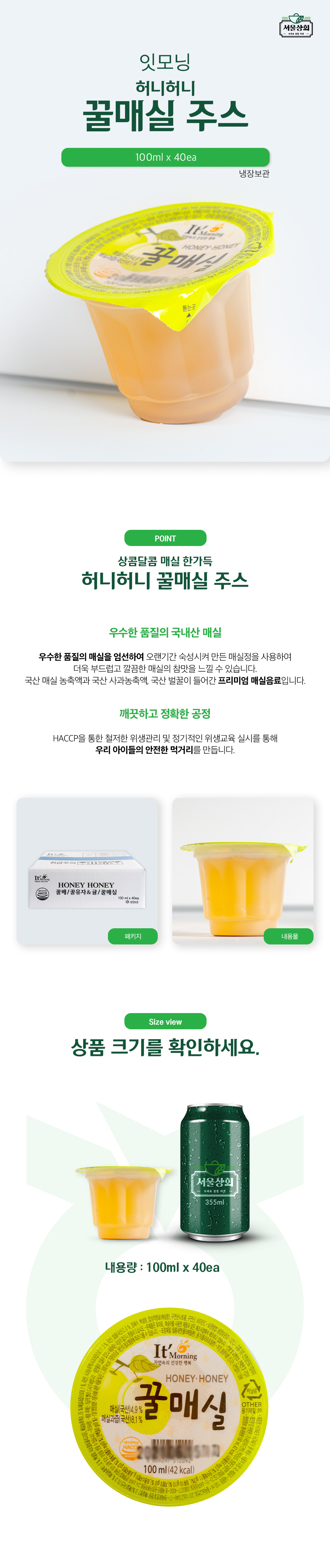 [잇모닝] 허니허니 꿀매실 주스 100ml x 40ea