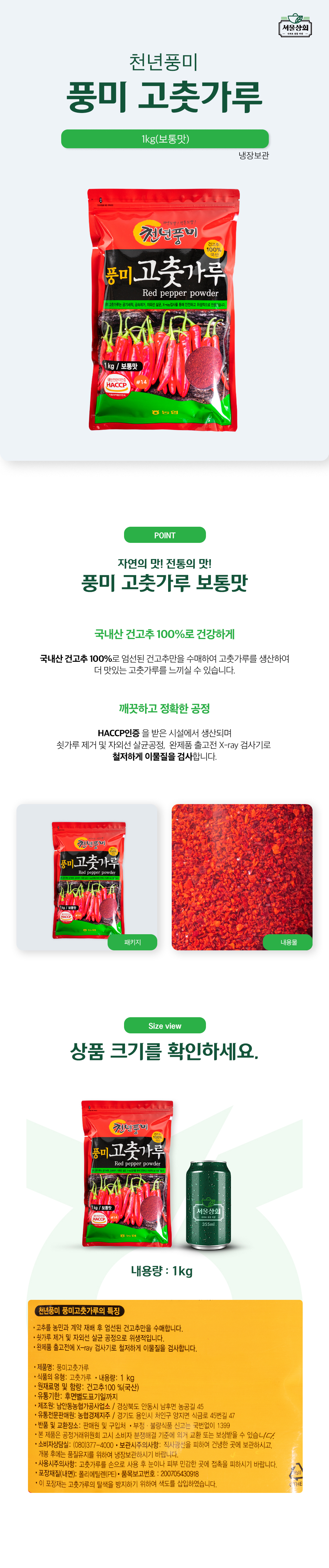 [천년풍미] 풍미 고춧가루 1kg (조미용/보통맛)