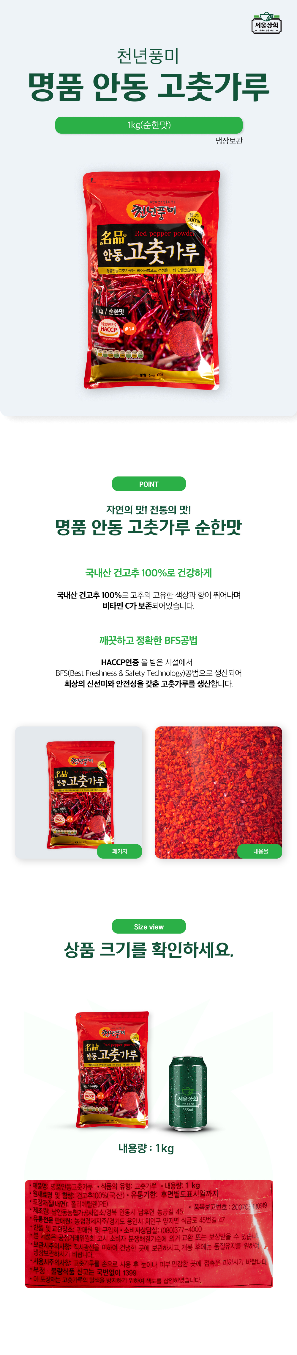 [천년풍미] 명품 안동 고춧가루 1kg (조미용/순한맛)