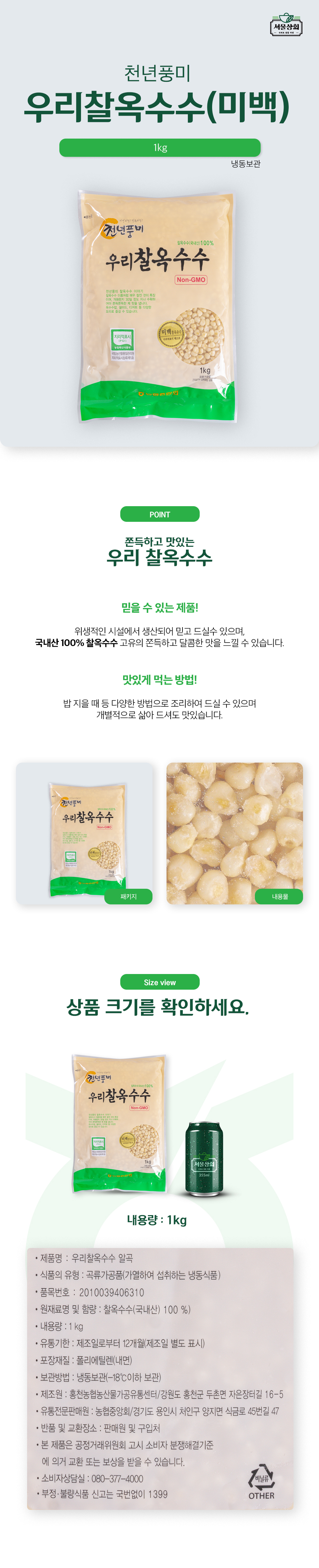 [천년풍미]우리찰옥수수(미백) 1kg